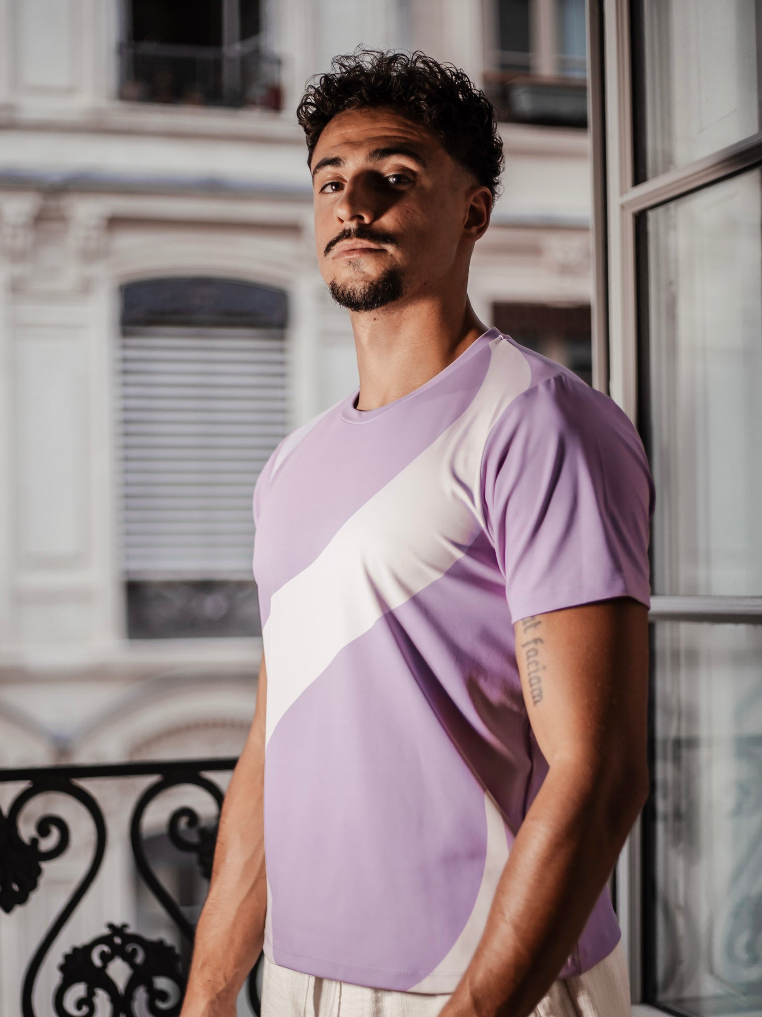 Couleur : violet profond avec accents minimalistes.